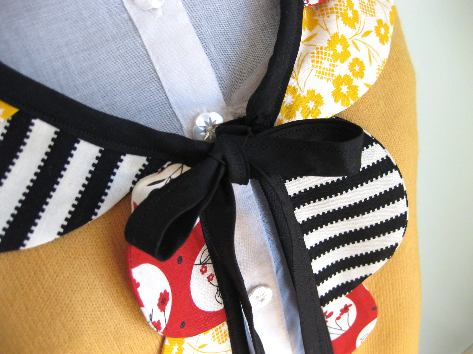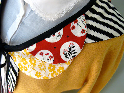 For the scallops that are being placed just around the curve of the collar, you will want to cut a curve in your scallop, as well - making it more of a crescent shape.